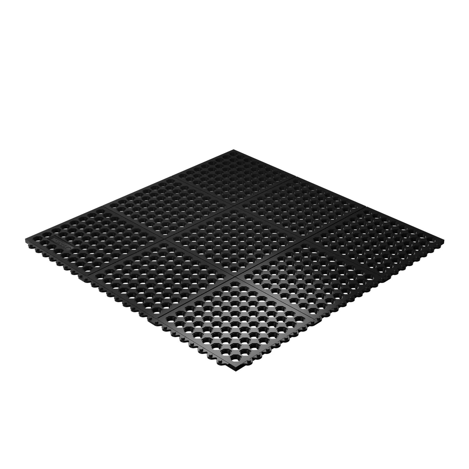 Bodenfliesen Cushion Ease für alle Bereiche, in denen erhöhte Rutschgefahr durch Feuchtigkeit besteht. Gute Rutschhemmung, fester Halt auf nassem Untergrund. Exzellente Drainage dank großer Löcher. Aus robustem Naturgummi oder Nitrilgummi.